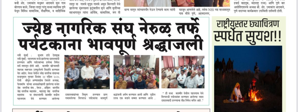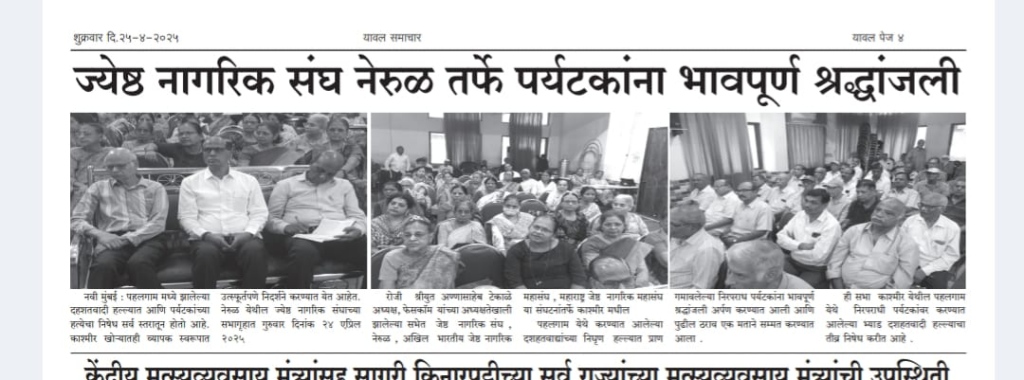 ज्येष्ठ नागरिक संघ नेरुळ तर्फे पर्यटकांना भावपूर्ण श्रद्धांजली