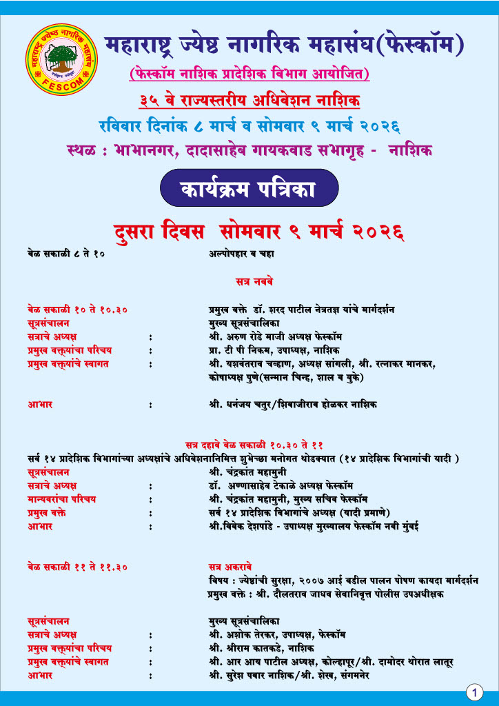 फेस्कॉम ३5 वे राज्यस्तरीय (नाशिक दि. ८, ९ मार्च २०२६)
